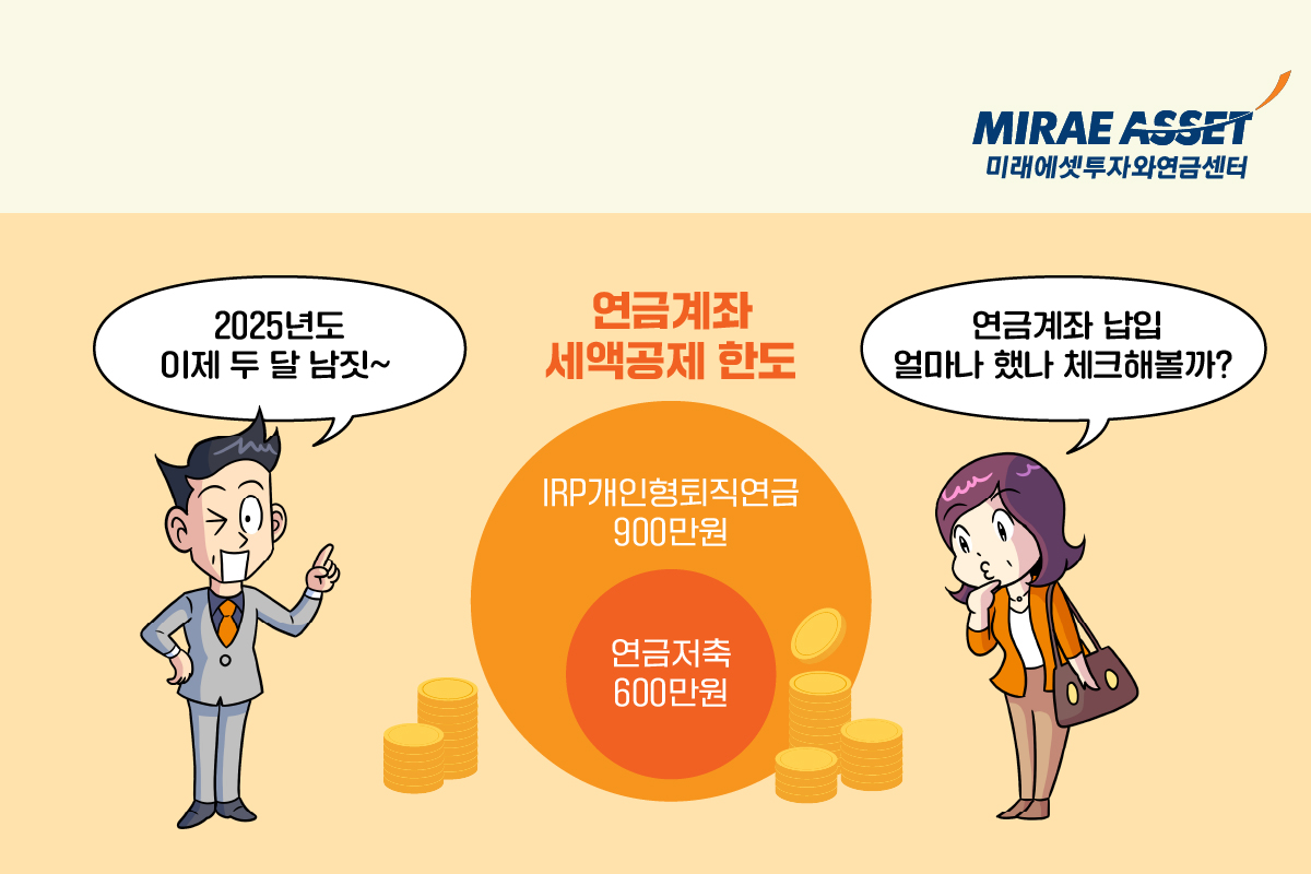 연말이 다가올 때 꼭 체크해야 할 것이 있습니다. 올해 연금계좌, 그러니까 연금저축이나 IRP에 얼마나 넣었는지 확인하는 것이죠. 두 달 뒤면 올해의 세금 혜택이 사라집니다. 지금 한 번만 점검해두면, 연말정산 때 ‘13월의 월급’이라는 기분 좋은 선물을 받을 수 있죠.