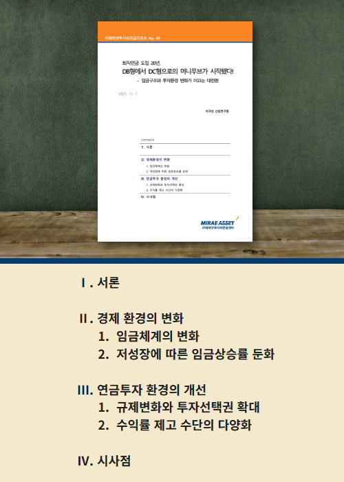 - 우리나라 퇴직연금의 중심축이 사용자 운용 중심의 DB형에서 가입자 운용 중심의 DC형·IRP로 이동하는 대전환이 본격화되고 있음을 의미