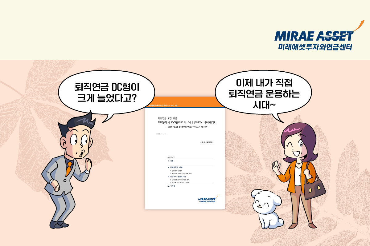 요즘 직장인들 사이에서 '퇴직연금, 어떻게 관리해야 할까' 고민하는 분들이 점점 늘어나는 것 같습니다. 어떤 제도를 선택하느냐, 어떻게 운용하느냐에 따라 내 노후자금이 크게 달라질 수 있기 때문인데요. 어떤 제도가 유리한지는 개인의 상황과 더불어 변화화는 환경을 고려해봐야 하죠. 그래서 이번 뉴스레터에는 퇴직연금 가입자를 둘러싼 환경이 최근 어떻게 변하고 있는지에 대한 흥미로운 연구리포트를 준비해봤어요. 이어서 실제 제도를 고를 때 꼭 체크해야 할 실전 팁을 담은 글도 함께 읽어보시면 좋겠네요. 날씨가 부쩍 추워졌습니다. 감기 조심하시고 따뜻한 하루 보내세요!