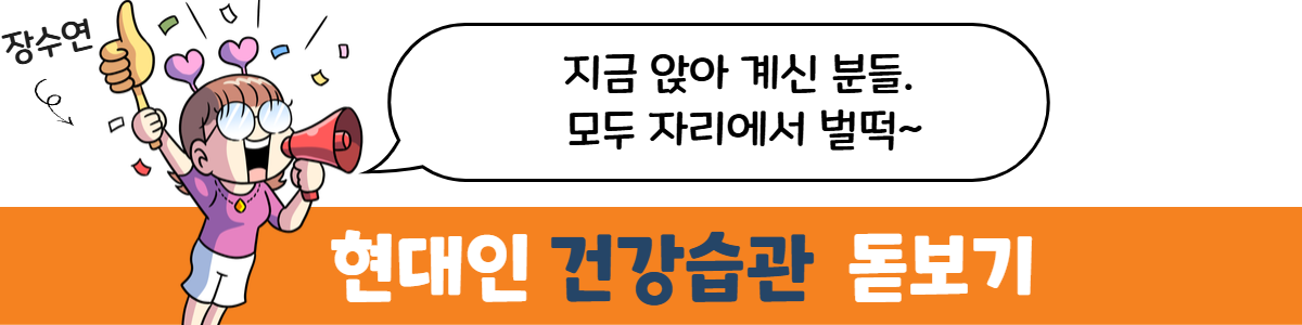 다음으로 하루 총 좌식시간을 7시간 아래로 줄여봅시다. TV 시간을 1시간 줄이고, 해야 할 집안일은 없는지 괜히 두리번 두리번 거리며 할 일을 찾아봅시다. 아니면 TV를 보더라도, 서서 좌우로 움직이면서 봐봅시다.